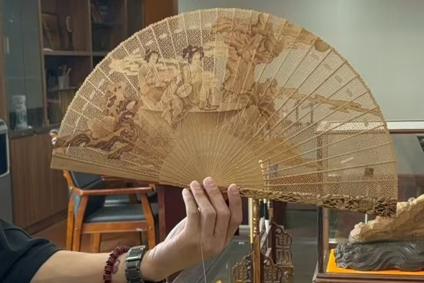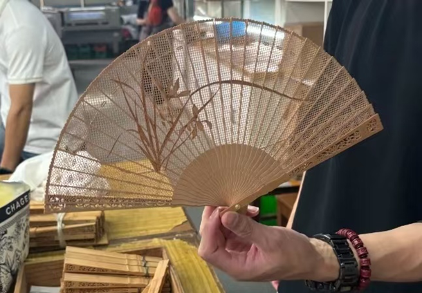 其历史可追溯至明清,拉花、烫花等技艺,让扇骨 “薄如纸、轻如羽”,0.1毫米的刻痕尽显匠心。