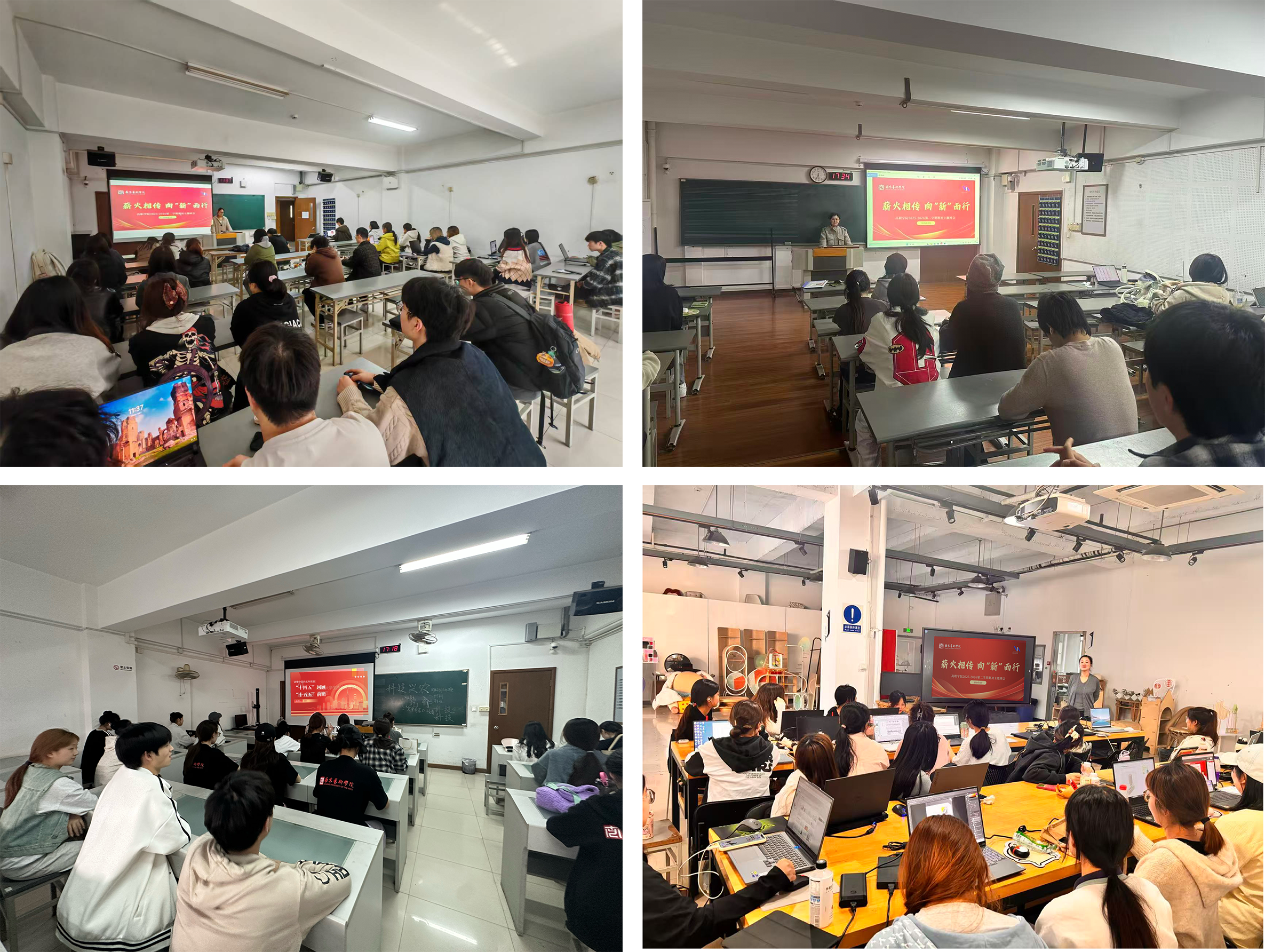 本次班会紧扣文化传承、网络文明、专业融合三大方向,通过理论学习、交流研讨、实践引导等环节,扎实推进思想引领与学风建设。 会上,各班在班主任和辅导员的带领下系统学习《“十五五”规划纲要》中文化遗产保护、文化创作生产、网络文化培育等核心内容,结合习近平总书记参加江苏代表团审议时的重要讲话精神,明晰新时代文化传承发展与青年责任使命。班主任结合专业特色,解读数字技术、智能制造、文创产业、新媒体等与文化传承创新的融合路径,分享典型案例,引导学生积极将专业学习创作与社会实践投入到文化强国、文化强省的建设中,赋能素养提升,增强担当本领。