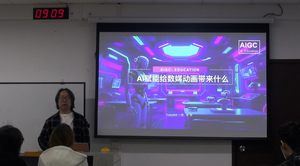 本次工坊特邀行业资深专家张恒老师授课。张恒老师是南京师范大学美术学院动画硕士,前原力动画美术总监,参与过EA、2K、SONY、ACTIVITION等国际顶级游戏公司项目,作品曾在美国PCgame杂志封面发表。现任南京易技未来动画制作有限公司总经理,同时担任江苏技术能手、第二届中华人民共和国技能大赛3D数字游戏艺术赛项裁判、第46届及第47届世界技能大赛3D数字游戏江苏省选拔专家组长与裁判长、南京师范大学美术学院研究生校外导师、江苏联合职业技术学院产业教授、全国职业院校技能大赛相关赛项裁判长等多项社会职务。张恒老师将前沿的产业经验带入课堂,带领同学们系统拆解了AI漫剧从文本到成片的完整工业化流程。